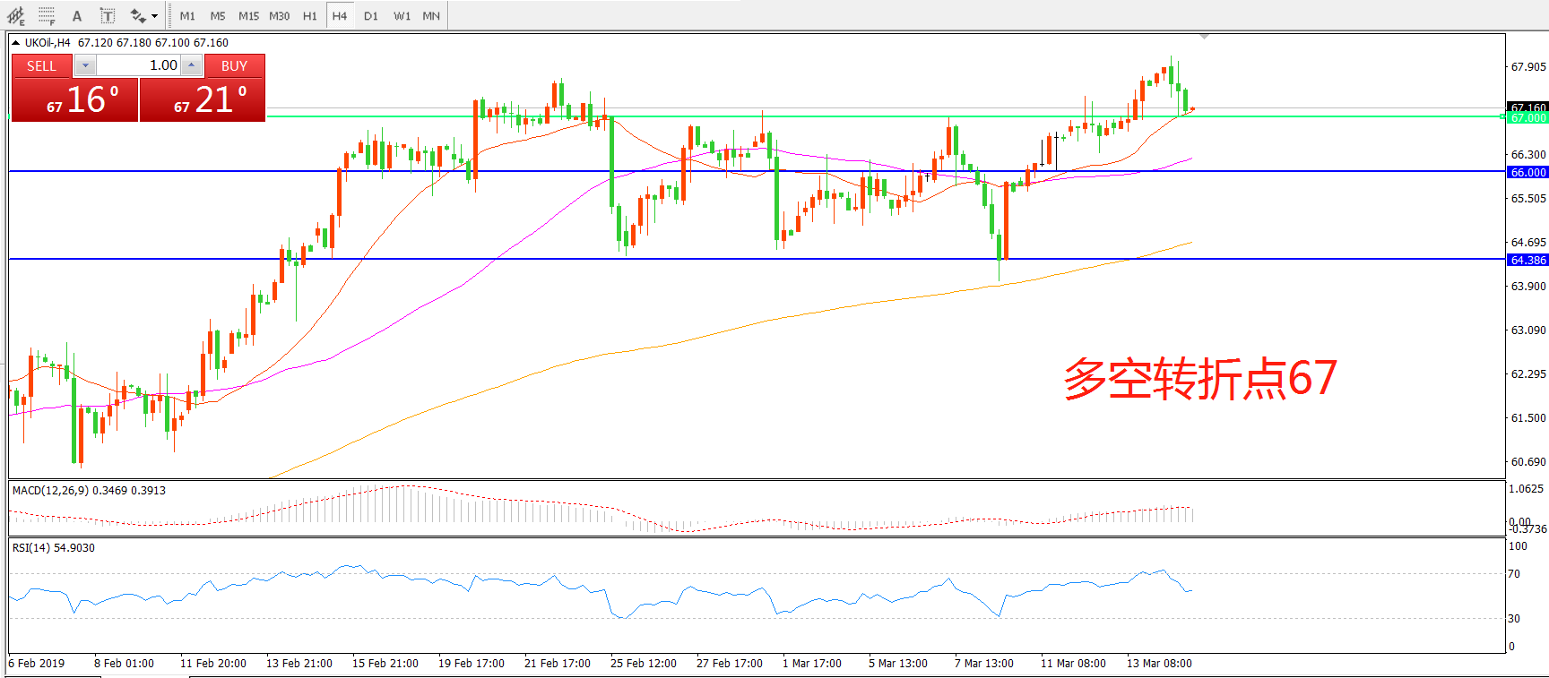 多空转折点:67.00