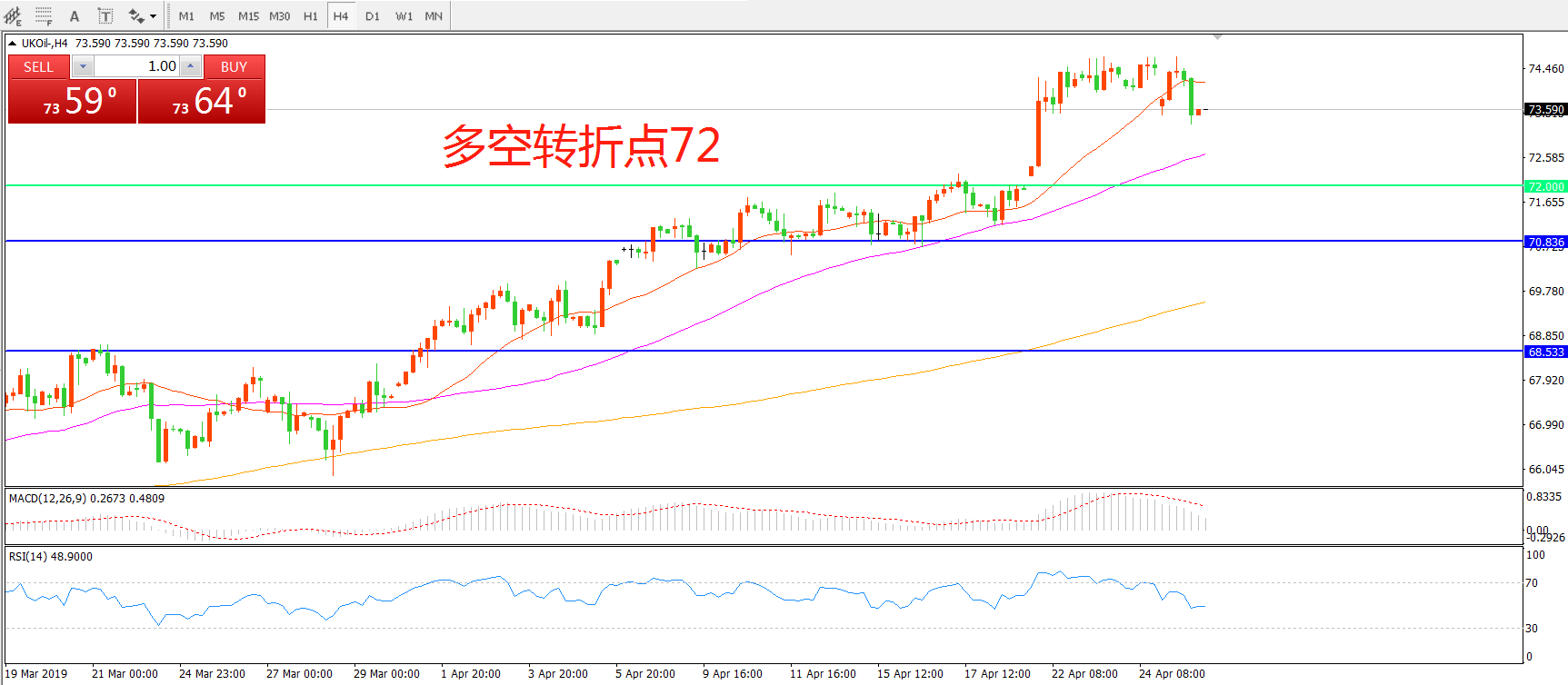 多空转折点:72.00