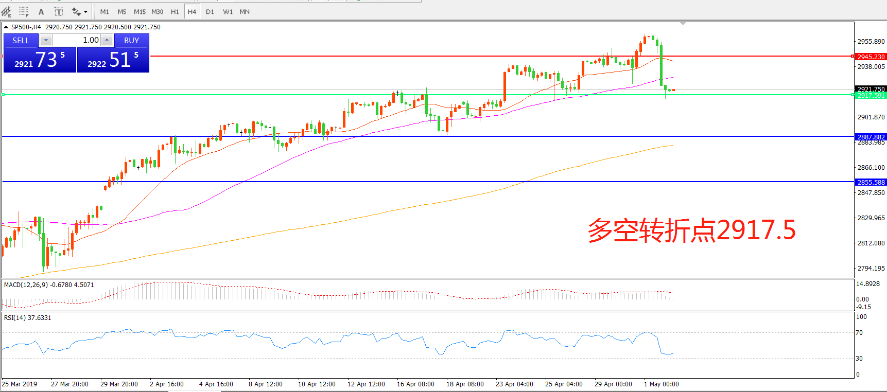 多空转折点:2917.50