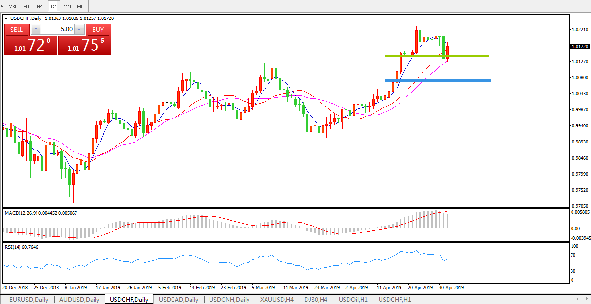 美元兑瑞郎USDCHF 日线图: