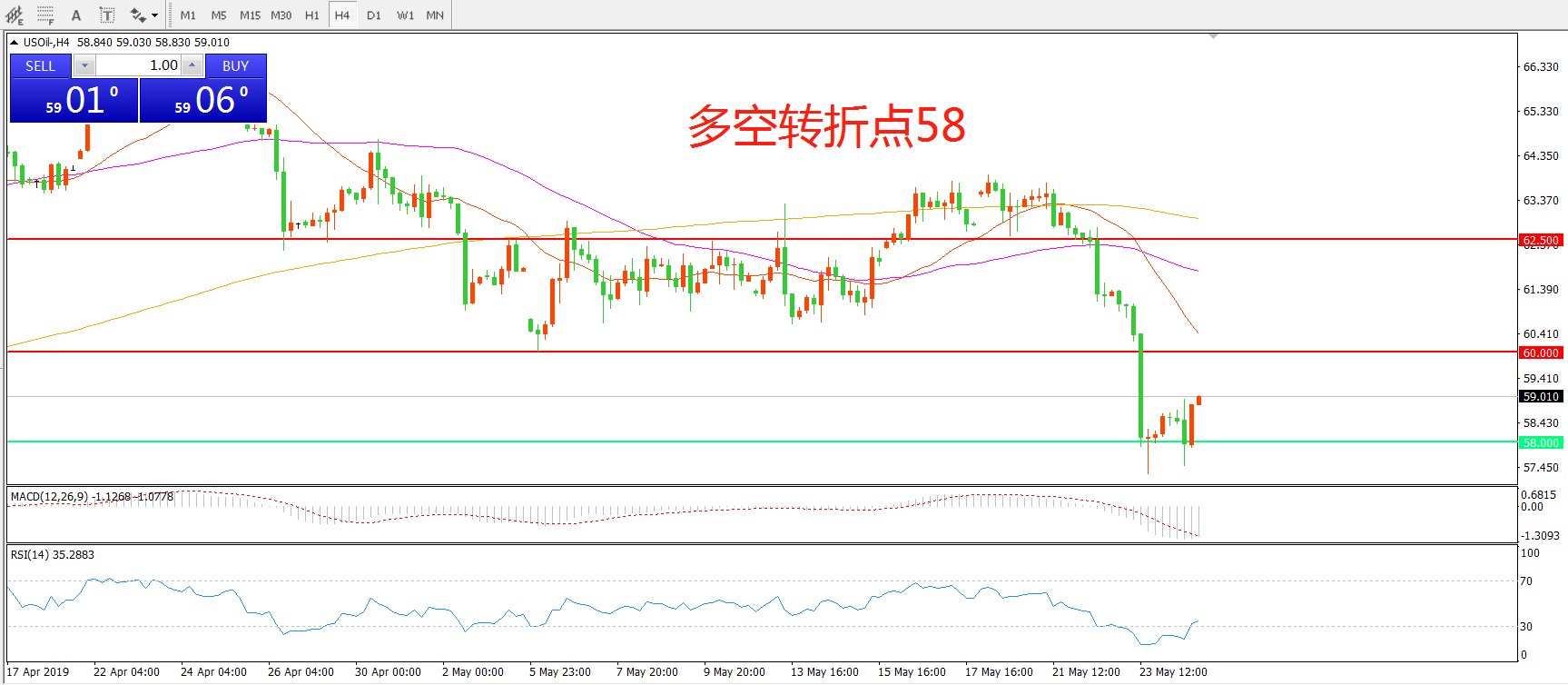 多空转折点:58.00
