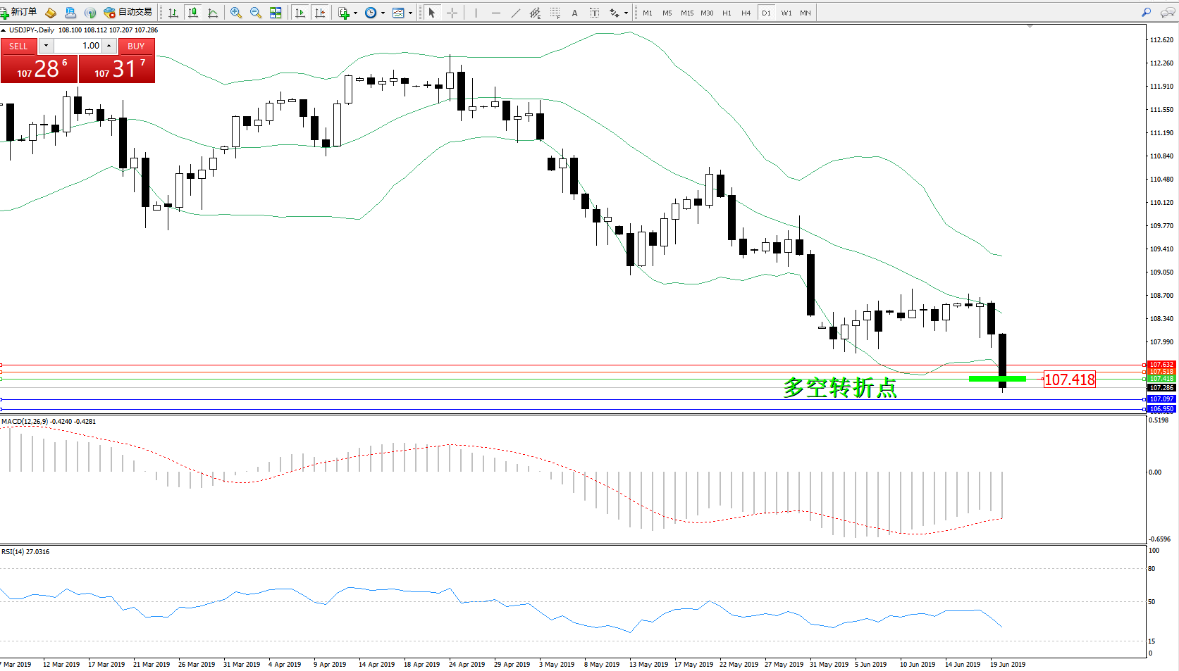 交易策略:107.418下方看跌,目标107.097106.950