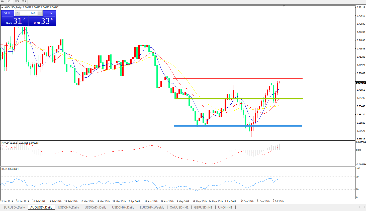 交易策略:0.6960上方看涨,目标0.70200.7100