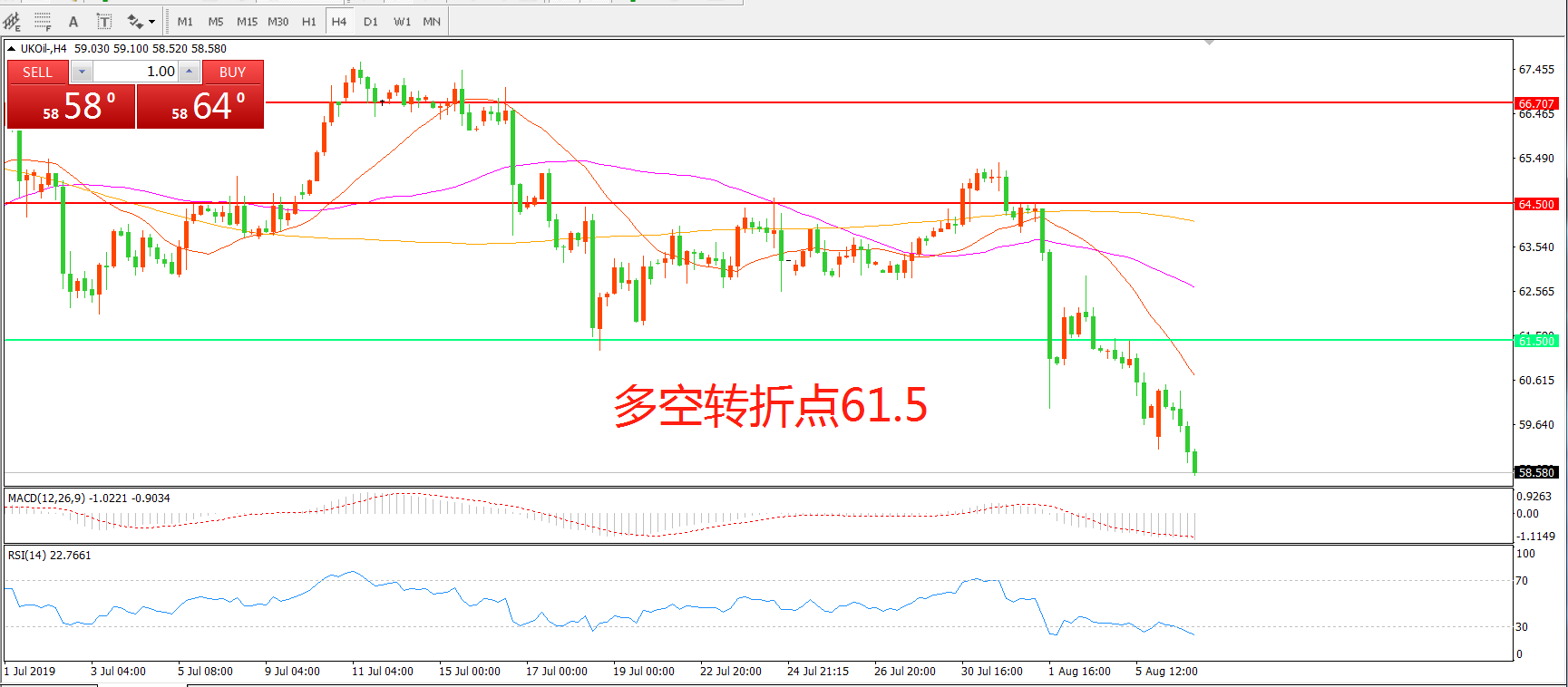 交易策略:在61.50之下看跌,目标57.50 53.50