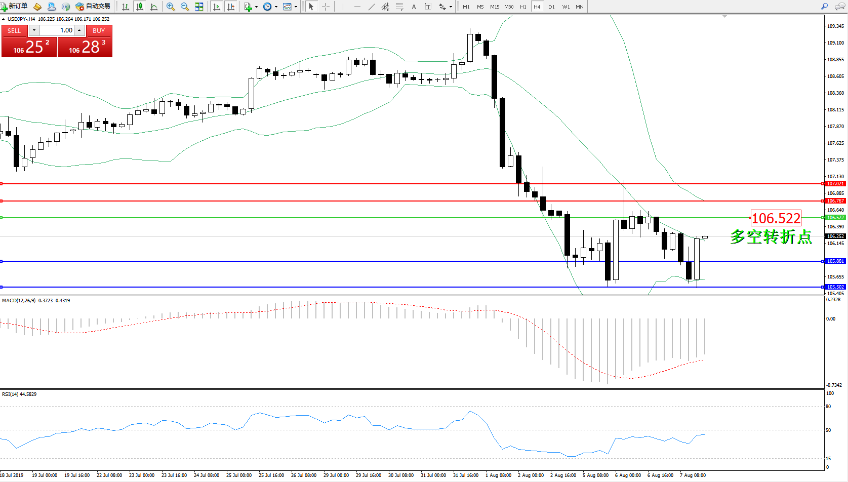 交易策略:106.522下方看跌,目标105.881105.502