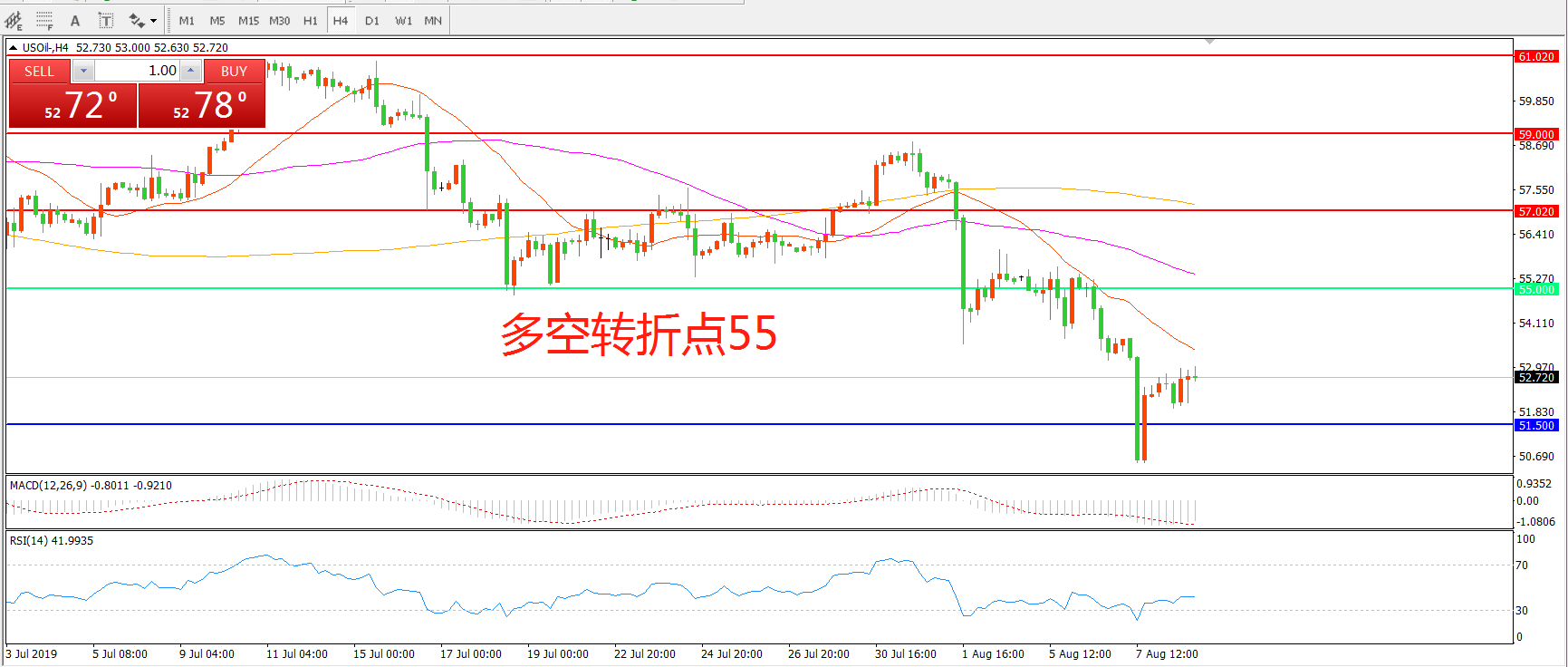 多空转折点:55.00