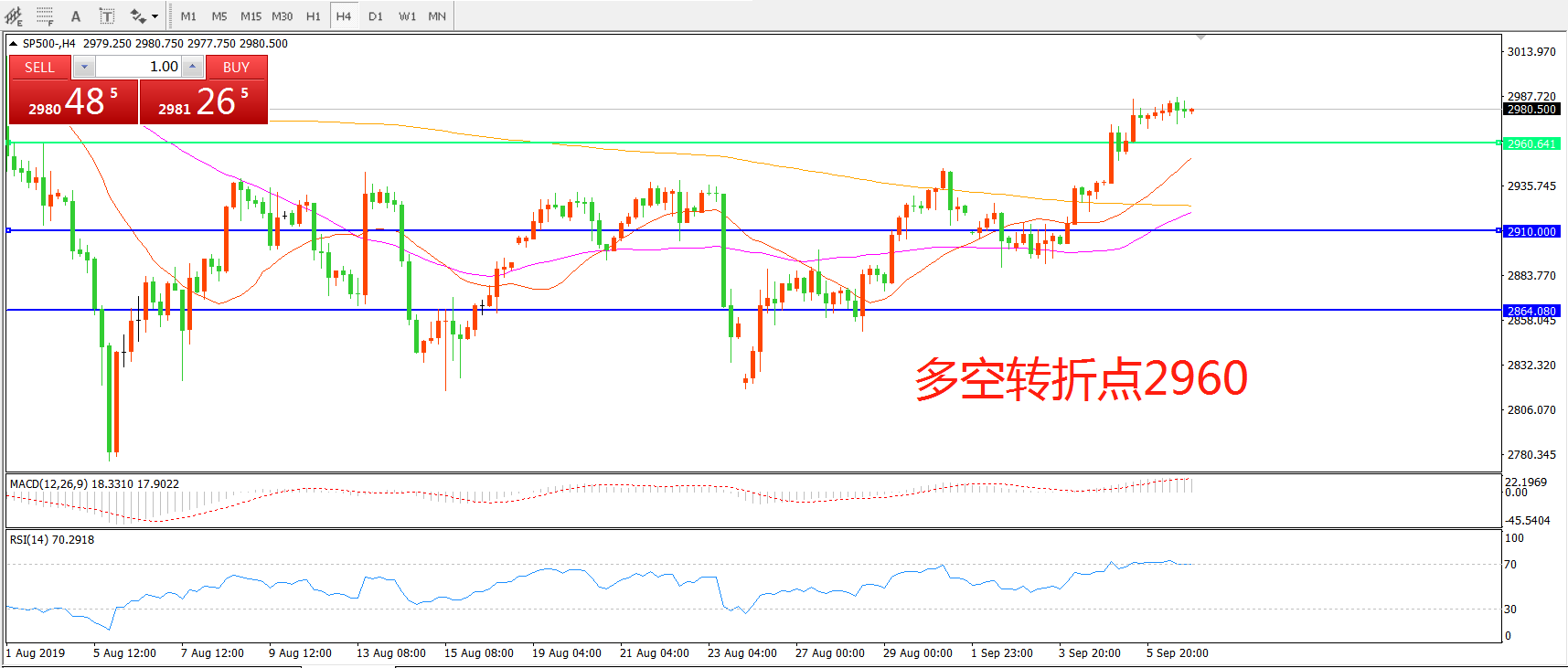 多空转折点:2960.00