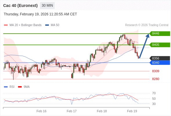 在 8340 之上,看涨,目标价位为 8405 ,然后为 8446 。