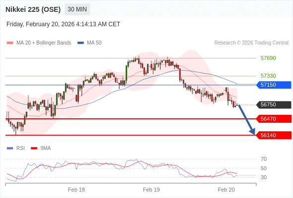 在 57150 之下,看跌,目标价位为 56470 ,然后为 56140 。