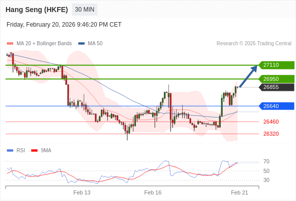 香港恒生指数期货 当日内: 目标位为27110。