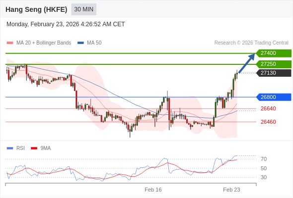 在 26800 之上,看涨,目标价位为 27250 ,然后为 27400 。