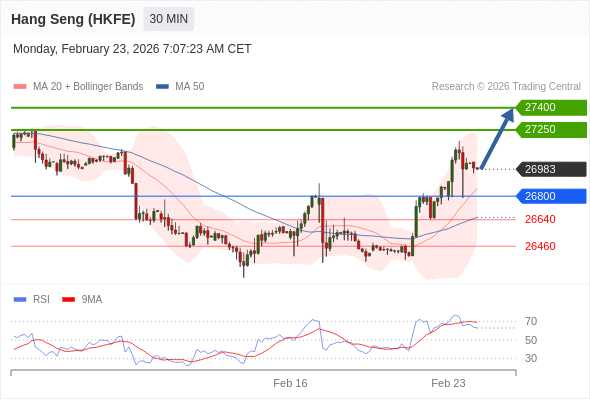 在 26800 之上,看涨,目标价位为 27250 ,然后为 27400 。