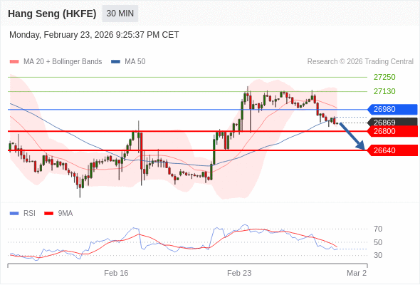在 26980 之下,看跌,目标价位为 26800 ,然后为 26640 。
