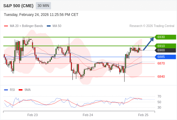 在 6885 之上,看涨,目标价位为 6910 ,然后为 6930 。