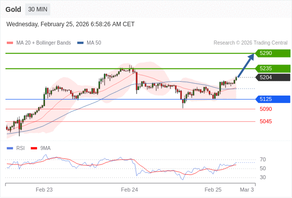 在 5125 之上,看涨,目标价位为 5235 ,然后为 5290 。