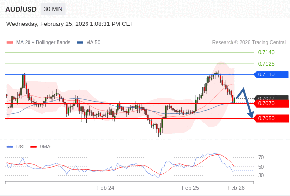 在 0.7110 之下,看跌,目标价位为 0.7070 ,然后为 0.7050 。
