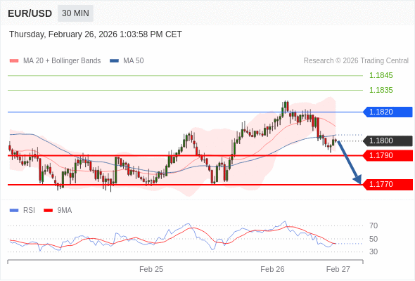 在 1.1820 之下,看跌,目标价位为 1.1790 ,然后为 1.1770 。