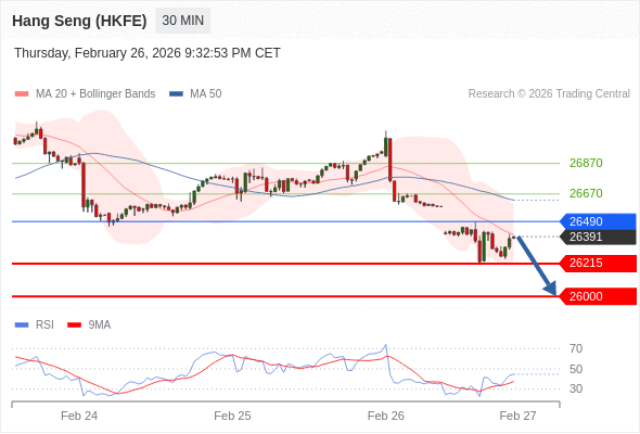 在 26490 之下,看跌,目标价位为 26215 ,然后为 26000 。