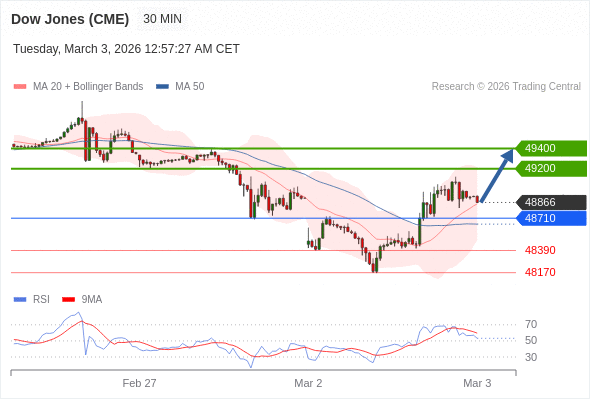 在 48710 之上,看涨,目标价位为 49200 ,然后为 49400 。