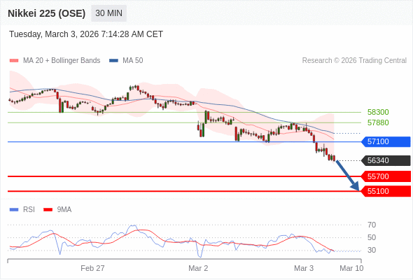 在 57100 之下,看跌,目标价位为 55700 ,然后为 55100 。