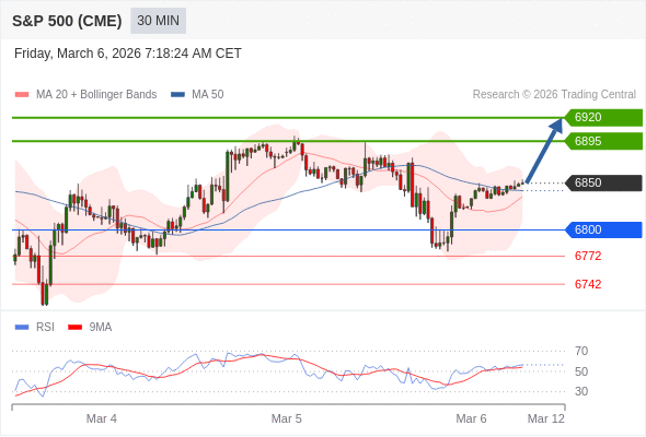 在 6800 之上,看涨,目标价位为 6895 ,然后为 6920 。