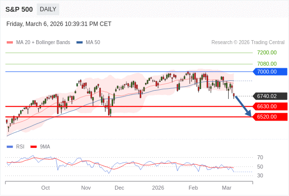 交易策略: 在 7000.00 之下,看跌,目标价位为 6630.00 ,然后为 6520.00 。