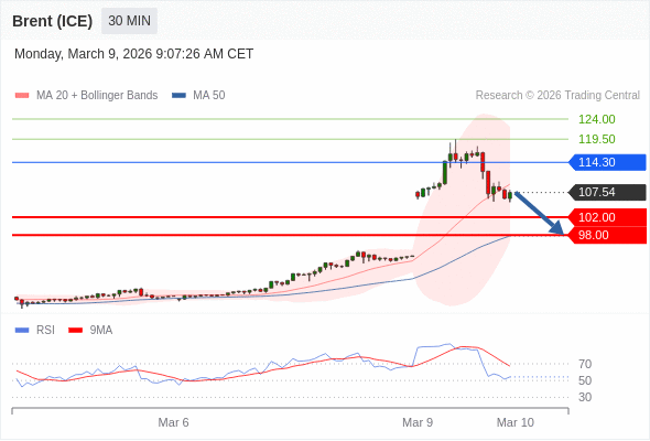 交易策略: 在 114.30 之下,看跌,目标价位为 102.00 ,然后为 98.00 。