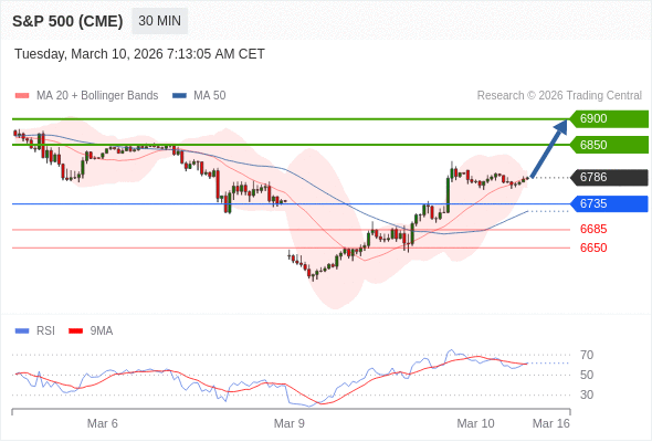 在 6735 之上,看涨,目标价位为 6850 ,然后为 6900 。