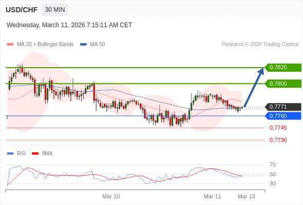 在 0.7760 之上,看涨,目标价位为 0.7800 ,然后为 0.7820 。