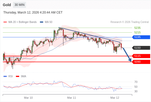 在 5195 之下,看跌,目标价位为 5115 ,然后为 5090 。