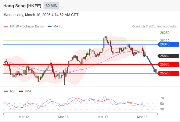 在 26040 之下,看跌,目标价位为 25680 ,然后为 25520 。