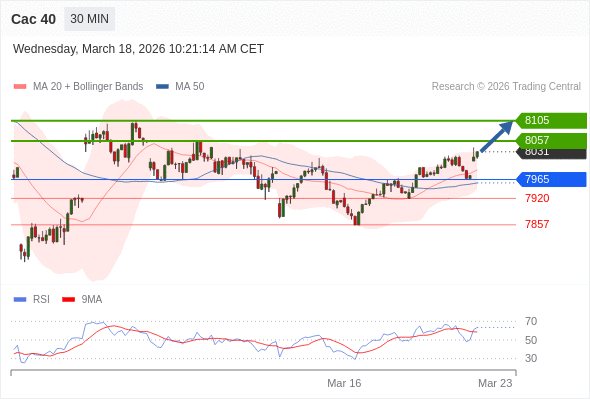 Cac 40 当日内: 目标位为8057。