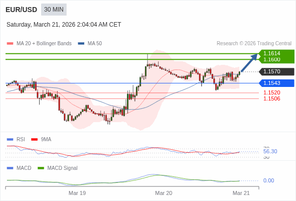 交易策略: 看涨,当 1.1543 为支撑位。