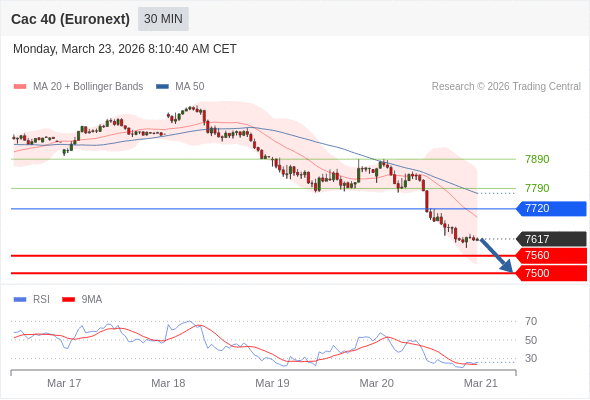在 7720 之下,看跌,目标价位为 7560 ,然后为 7500 。