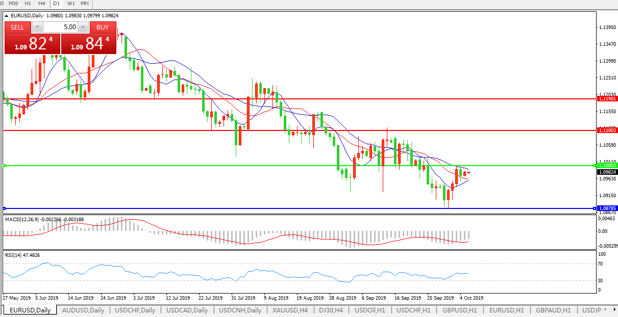 交易策略:1.1000下方看跌,目标1.0870、1.0700