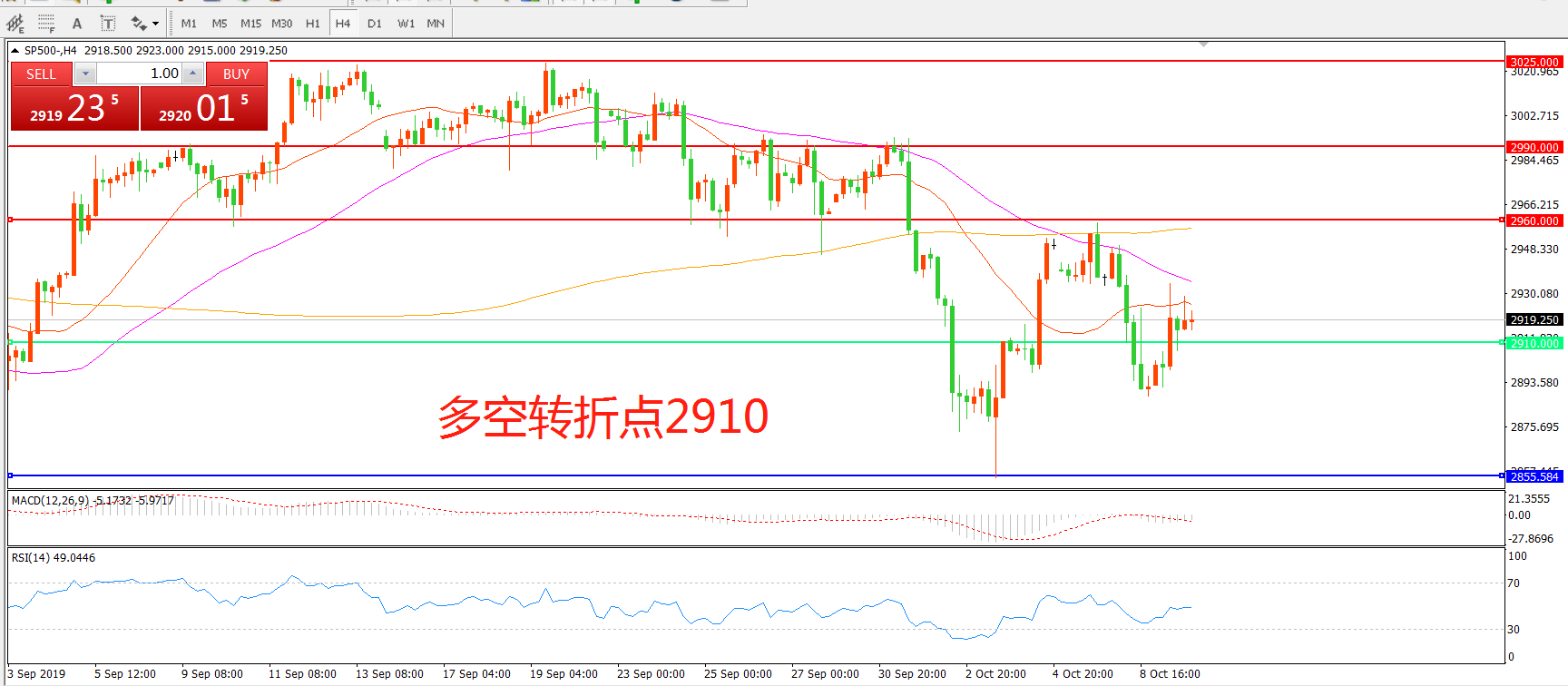 多空转折点:2910.00