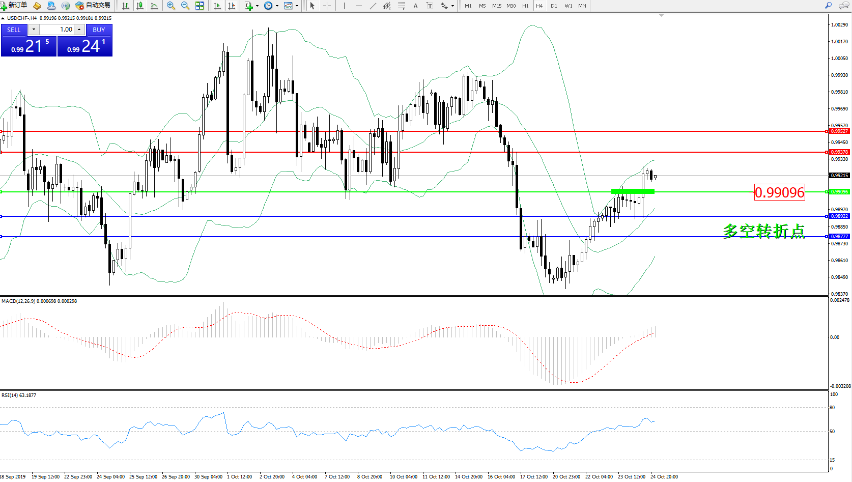 交易策略:0.99096上方看涨,目标0.99378、0.99527