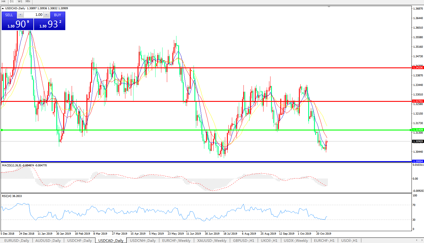 美元兑加元在周二欧洲时段再度遭遇抛压,跌至1.3042这一自7月中旬以来的逾三个月新低。虽然,日内在贸易利好消息的带动下,美元指数保持坚挺,但贸易领域的乐观情绪对于商品系货币的提振却更加显著,这直接推动了加元走势更强过美元; 除此之外,市场已经提前一日开始关注周三进入北美时段后加拿大央行和美联储陆续发布货币政策决议的前景。而投资者普遍认为,在美联储料将实施连续第三次降息行动的同时,加拿大央行则势必会维稳政策利率不变,并对该国经济给出积极的评述。这一此消彼长的预期也带动美元兑加元承压; 事实上,近期以来,加拿大经济基本面表现一直强于美国,该国大选的尘埃落定也令来自政治领域的不确定性得到释放,在此状况下,美元兑加元后市或面临1.30生死关口。而美联储主席鲍威尔在周三讲话中对未来政策走向的进一步指引,对于行情下一步走向也将至关重要