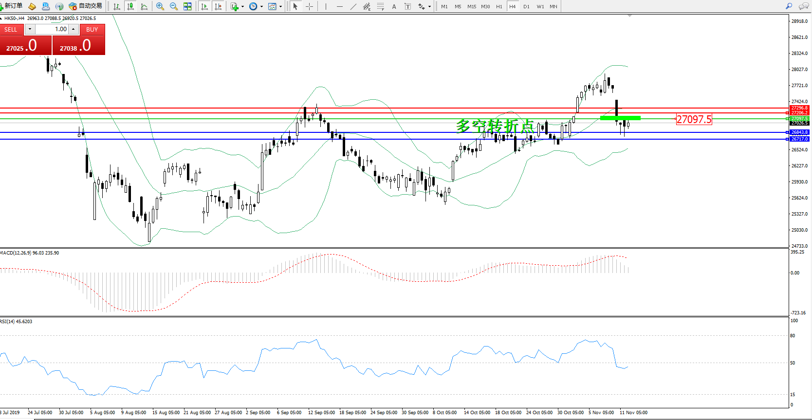 恒指HK50 ——4小时K线图显示: