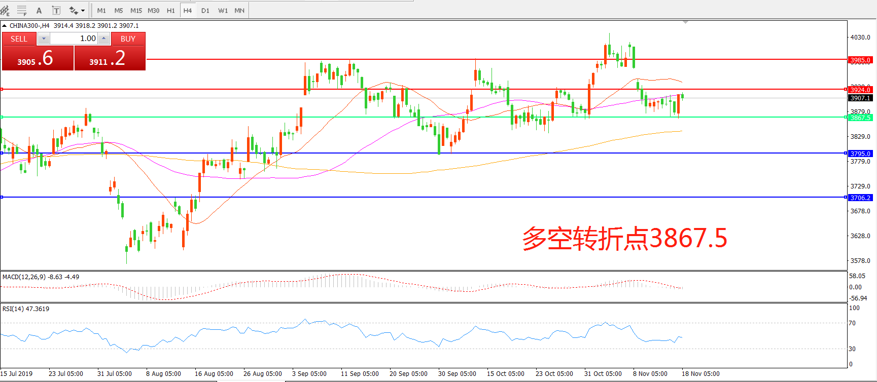 沪深300指数CHINA300 4小时图