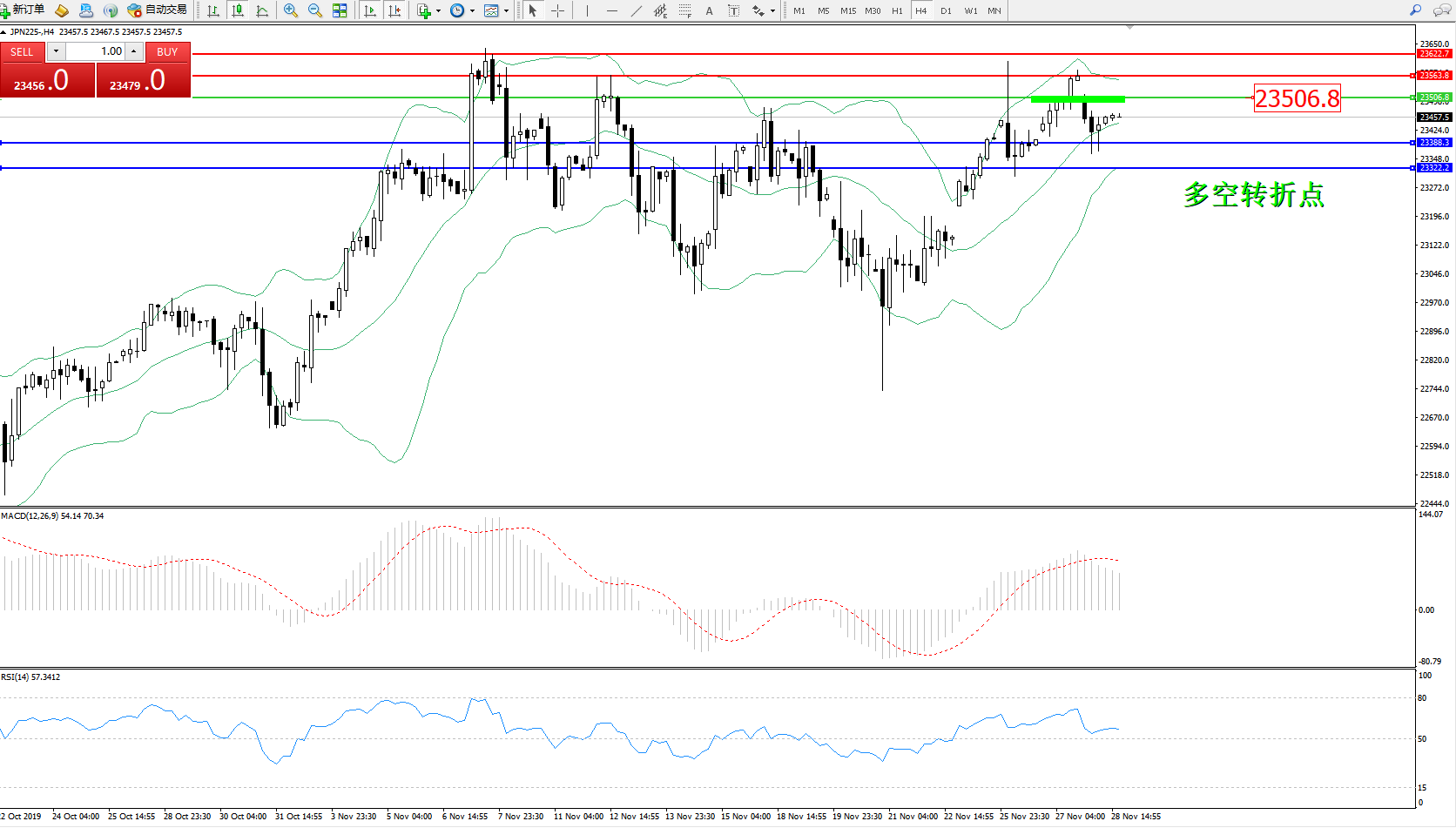日经225指数1128日(周四)收盘下跌35.27点,跌幅0.15%,报23402.50点。日本10月零售销售创逾四年半最大降幅,因上调消费税促使消费者削减支出,国内需求的力度亮起红灯。日本政府101日将消费税从8%上调至10%,希望借此解决该国庞大的公共债务负担。日本公共债务规模是国内生产总值(GDP)的两倍以上,债务负担是工业化国家中最重的;但一些分析师警告称,在面临出口和生产下滑的情况下,上调消费税可能导致经济失去增长动力。经济产业省周四公布的数据显示,日本10月零售销售较上年同期下降7.1%,受累于汽车和家电等大件商品以及服饰等需求疲弱。数据显示,百货店销售受挫尤其严重。这是自20153月下跌9.7%以来的最大跌幅,日本第三季经济增速为一年来最慢,10月出口创三年来最大降幅。经济黯淡状况激发对政府制定大规模支出计划的呼吁,以保持该国脆弱的经济复苏仍在正轨。一些分析师表示,受恶劣天气影响,10月零售销售状况尤其疲弱。当月日本中部和东部遭巨大台风袭击,加剧了消费税上调带来的负面影响。