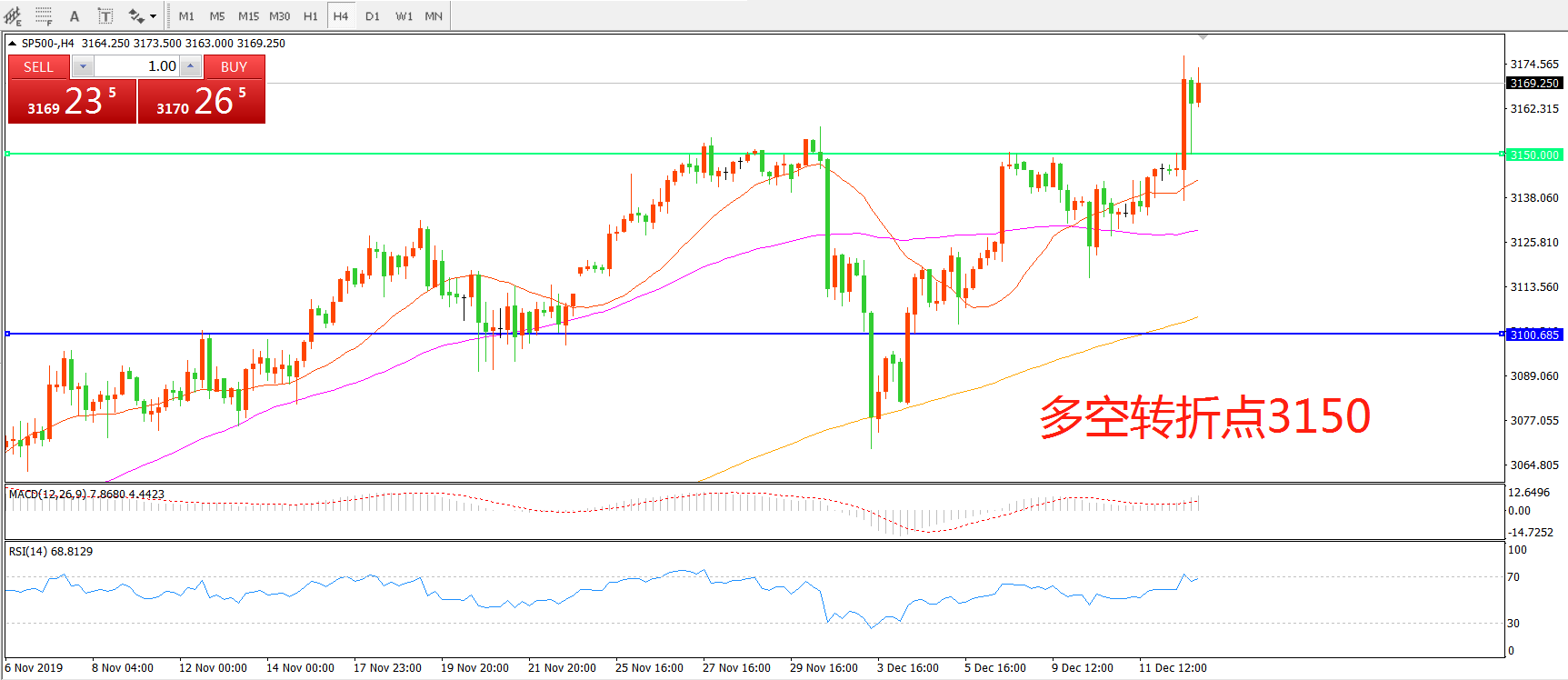 多空转折点:3150.00