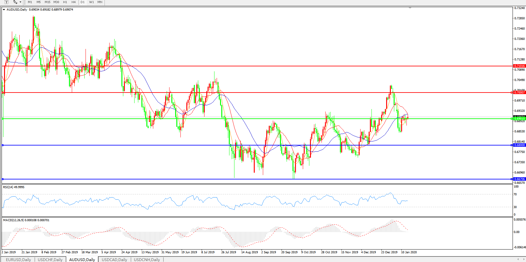 备选策略:0.6900上方看涨,目标0.7000、0.7100