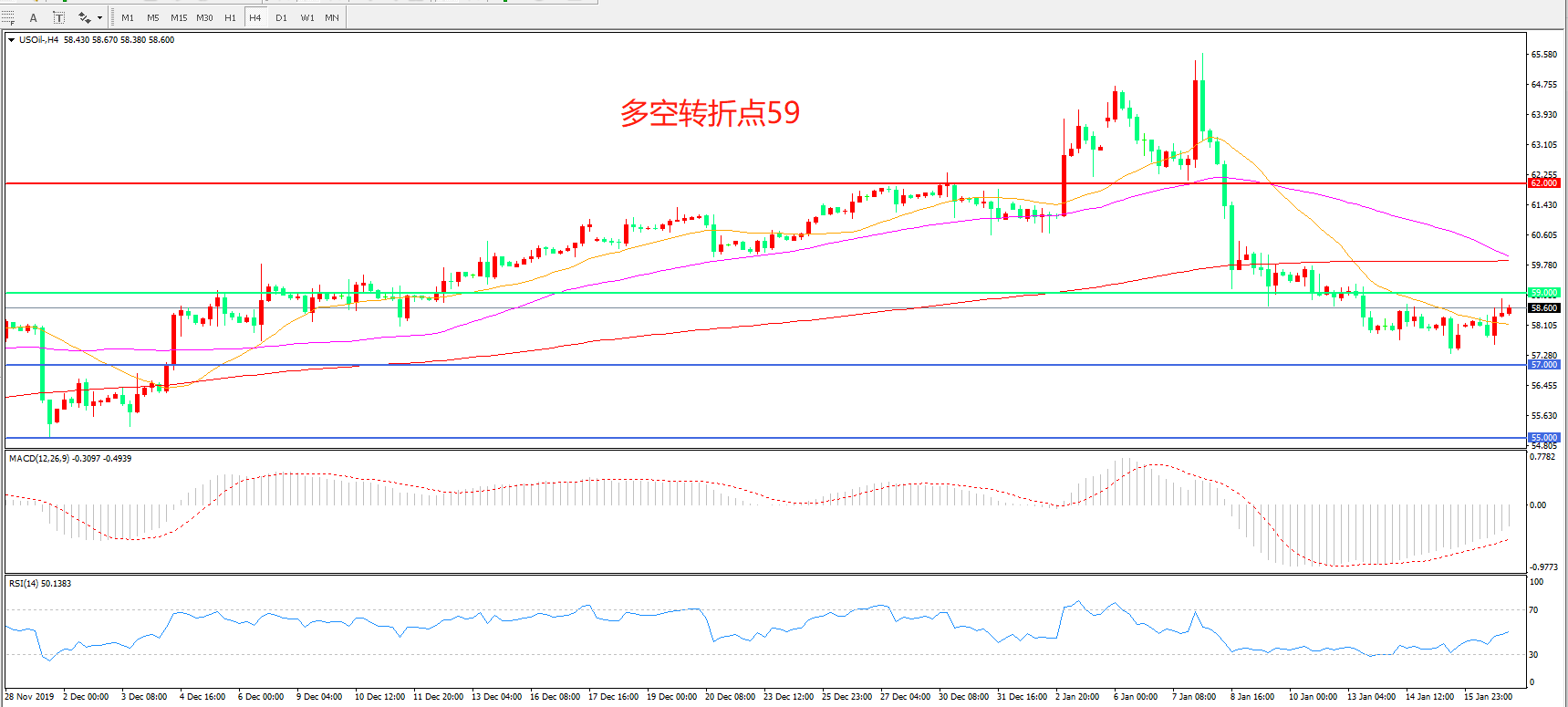 交易策略: 在59.00之下看跌,目标57.00 55.00