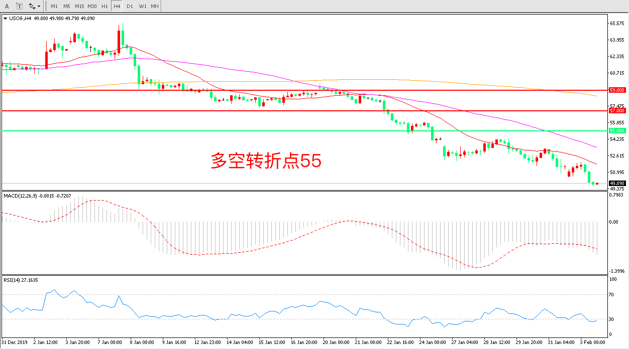 交易策略:在52.00之下看跌,目标49.00         45.00