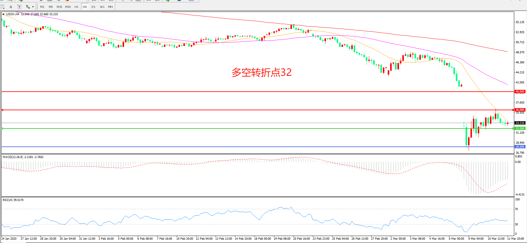 周三(3月11日),根据欧佩克月报显示,OPEC将2020年全球原油需求增速下调92万桶/日,而在EIA公布短期能源展望报告中,将2020油价预测下调了31%,市场上的悲观情绪蔓延,美国WTI原油收跌4%,报33.28美元/桶。