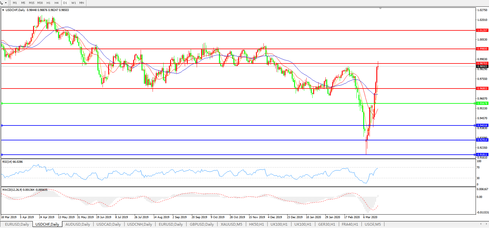 技术面简析:日线图均线整体呈多头排列,汇价快速大幅拉升,MACD于0轴下方拐头上行且量能0轴上方微放量,RSI快速走升,预计汇价料将进一步上行。