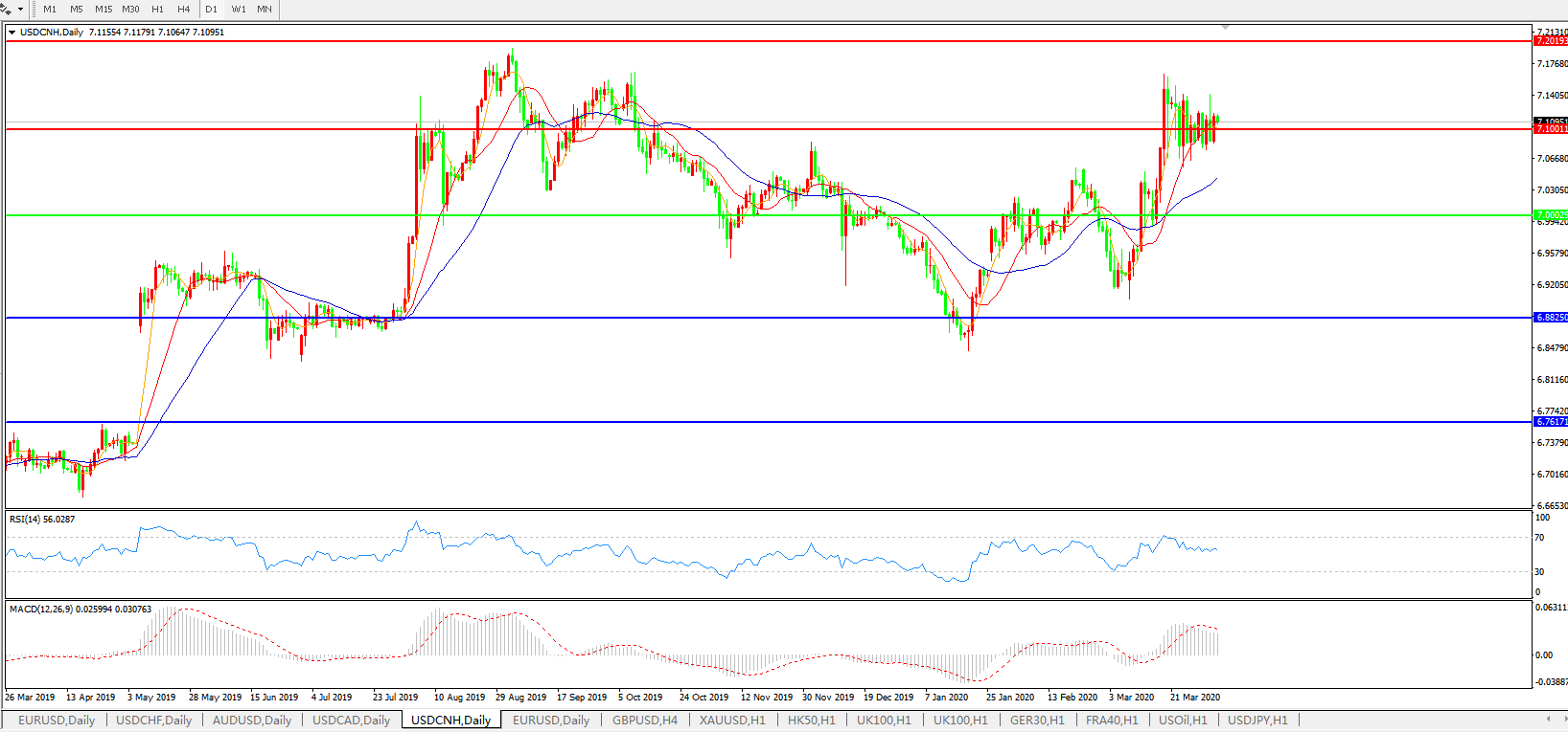 美元兑人民币USDCNH 日线图:
