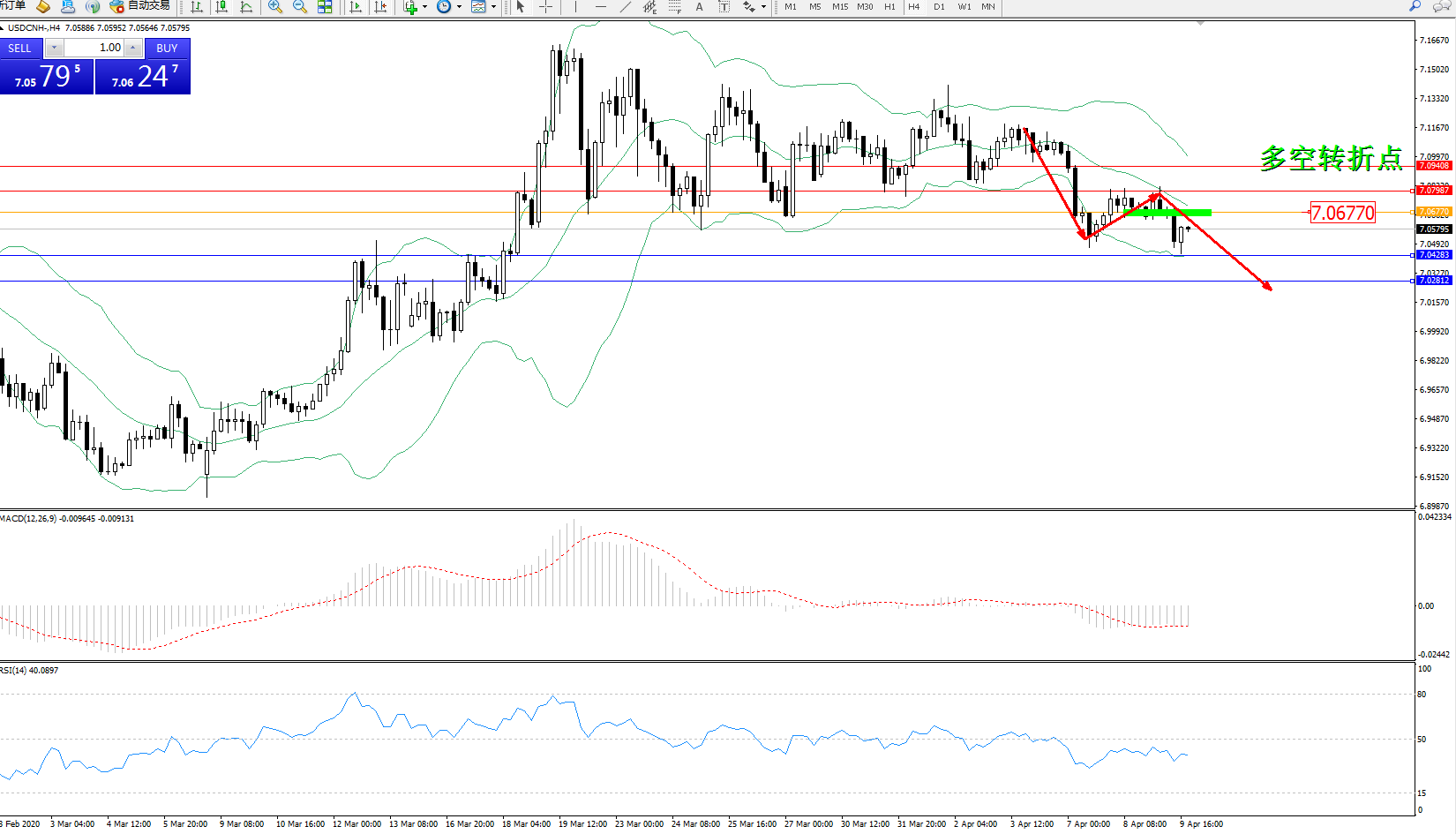 交易策略:7.06770下方看跌,目标7.042837.02812