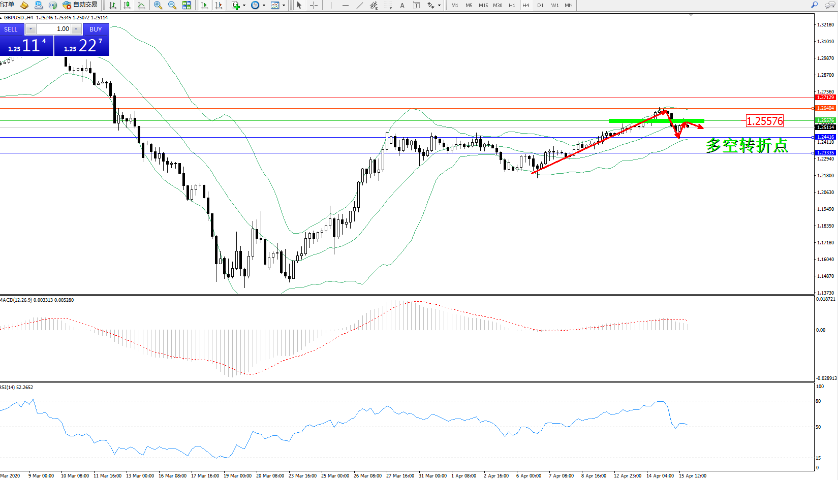 英镑美元GBPUSD ——4小时K线图显示:
